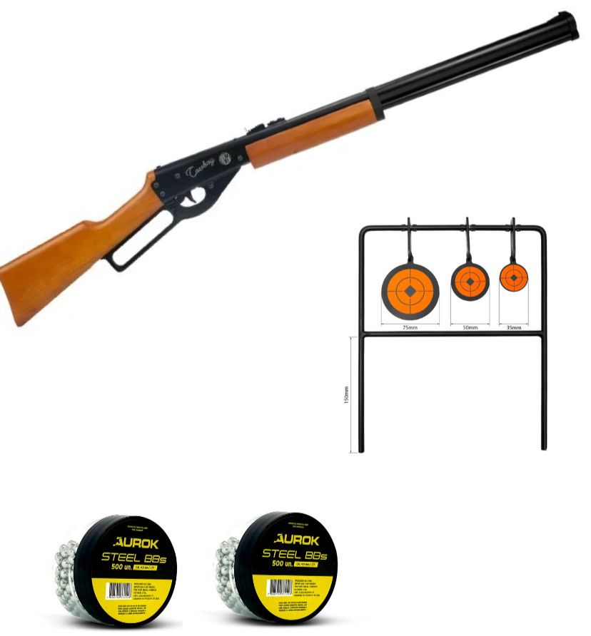 1x Carabina de pressão Rossi Cowboy Lever Action 4.5 mm Coronha em madeira