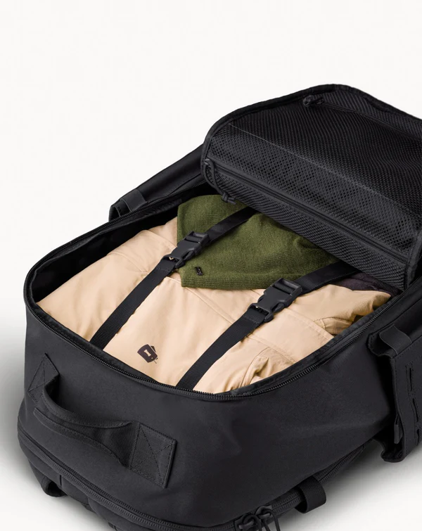 • Compartimento principal com painel interno organizador em mesh e fitas de compressão para melhor acomodação dos equipamentos.