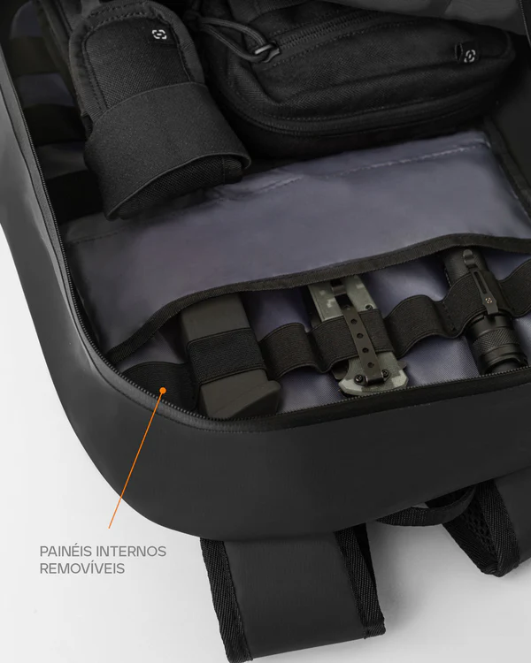 • Dois painéis EDC destacáveis, projetados para organizar itens do dia a dia, permitindo personalização do espaço interno.